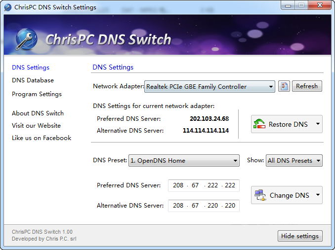 快速修改切換DNS地址(ChrisPC DNS Switch) 1.40 官方版 快速修改切換DNS地址(ChrisPC DNS Switch) 1.40 官方版