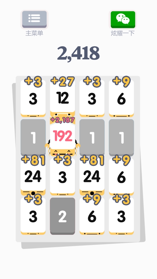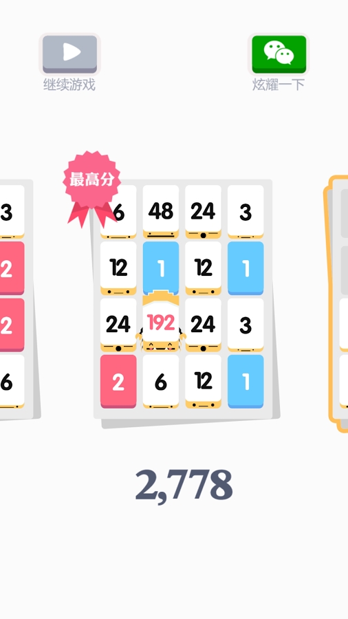 進入小3傳奇安卓游戲開始的界面,你會看到整體的游戲風格非常簡約樸素,但又的確讓人感覺舒服。在一個4*4的方格里,初始時會有一些較小的數(shù)字散布其中,比如1、2、3。玩家可以通過手指上下左右操作,控制所有可活動的數(shù)字在指定方向上移動一格。而每移一步,就會有一個新的方塊補充進來,你可以從頂部的提示中知道下一個數(shù)字是什么,以便玩家確定策略。玩家移動數(shù)字的唯一目的就是:盡量多地湊出96、192、384、768、1536等大數(shù)!這里要提兩點核心合并規(guī)則:一、數(shù)字1只能和數(shù)字2合并;二、數(shù)字3以上只能與相同數(shù)字合并,即3和3合并成6,6和6合并成12。