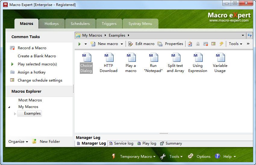 鼠標宏制作工具 Macro Expert Enterprise是一款非常好用的自動運行重復性工作的鍵盤鼠標宏編輯制作工具,它能夠記錄下鼠標和鍵盤的動作并且不斷重復的來完成一些重復性的工作。它可以在任何程序中運行,例如,游戲,繪圖等軟件中完成重復性的工作。也可以在某個特定的時間或者事件下自動運行指定的動作,實現(xiàn)無人操作,從而節(jié)省你大量的時間!