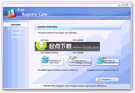 Free Registry Care是一款簡單易用的注冊軟件程序,本軟件使用高性能的算法迅速診斷錯誤的地方以及孤立的引用。并且能自動的修復(fù)它們 Serial : RC1999200