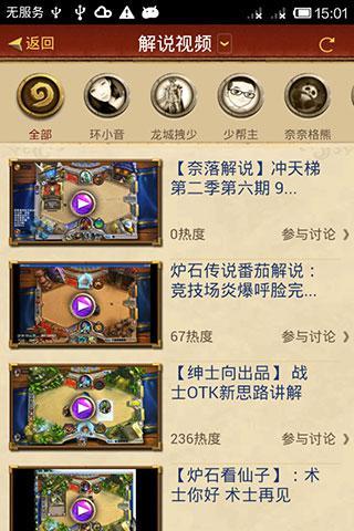 4、爐石視頻:最新賽事直播、第一時間觀看少幫主、JY等30位簽約解說視頻。