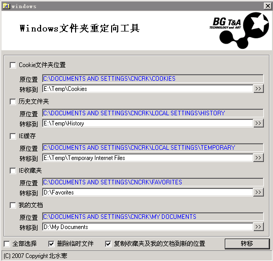 Windows文件夾重定向工具 V2.0.0.3 綠色免費版 轉移一些個人資料和設置,避免這些存放在系統(tǒng)分區(qū),減少對系統(tǒng)分區(qū)的占用,減少系統(tǒng)分區(qū)的分區(qū)碎片的產生,重裝系統(tǒng)后防止我的文檔資料的丟失!我的文檔操作后可能需要重啟后生效
