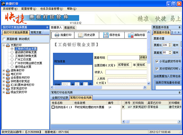 快捷打印是一款快捷搞笑的票據(jù)打印軟件。只需打開(kāi)填寫(xiě)好模板里的相關(guān)信息,就可以直接打印了。支持電匯打印、支票打印、進(jìn)賬單打印、業(yè)務(wù)委托書(shū)打印、付款憑證打印、匯票申請(qǐng)書(shū)打印、現(xiàn)金交款打印和支款憑證打印。