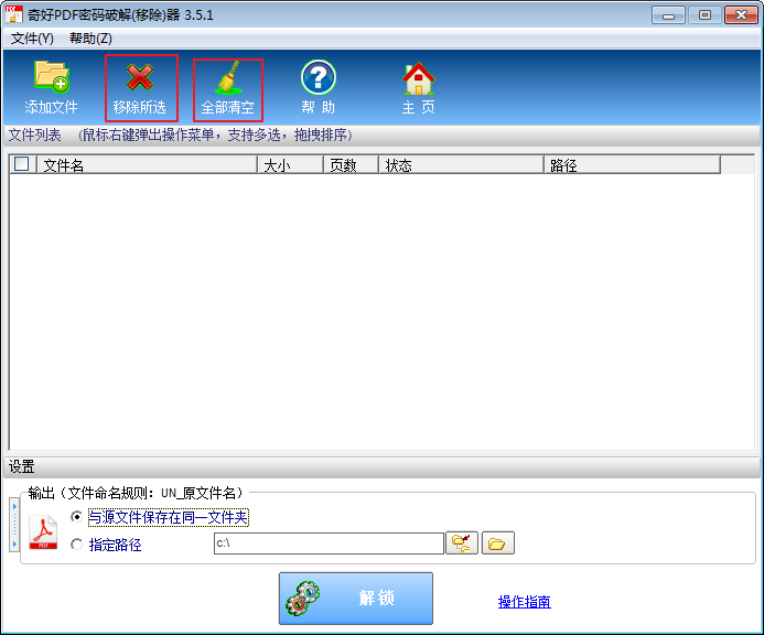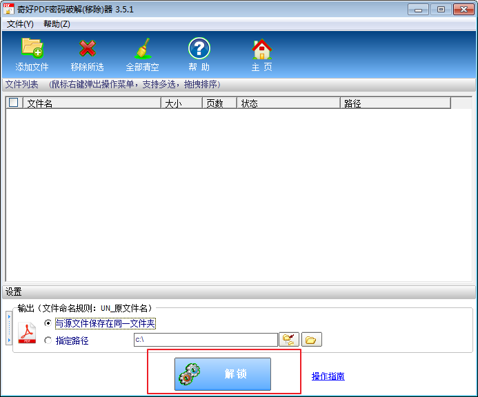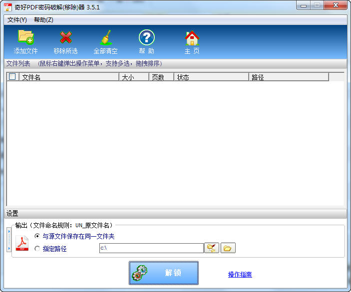 1、打開軟件,用戶可以將要解鎖的PDF文件拖入空白處,或者用添加文件,