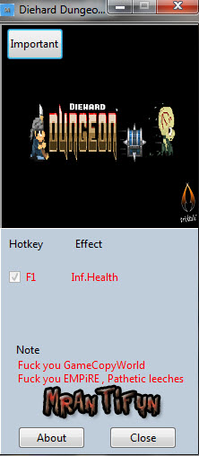 死硬地牢修改器作用于死硬地牢這款游戲,使玩家擁有無限生命,能暢爽游戲體驗(yàn)游戲帶來的快感,輕松通關(guān)。