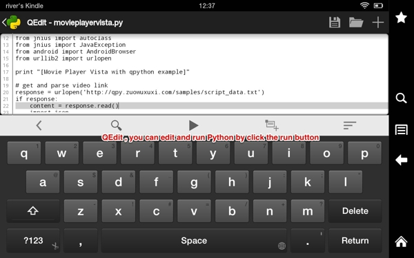 支持Android上的Python編程,包括游戲,網(wǎng)絡(luò),SL4A編程* 運(yùn)行一個Python腳本