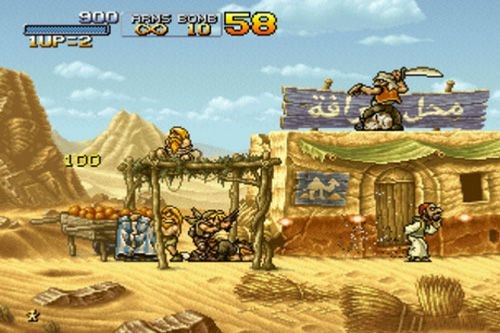 在一開始不多久有一名騎駱駝的敵人,對付他最好用槍打掉他的刀,再爬過去砍死他,可得4000多分。就在此處向最高的一棵樹開槍,有一串香蕉及兩名俘虜。