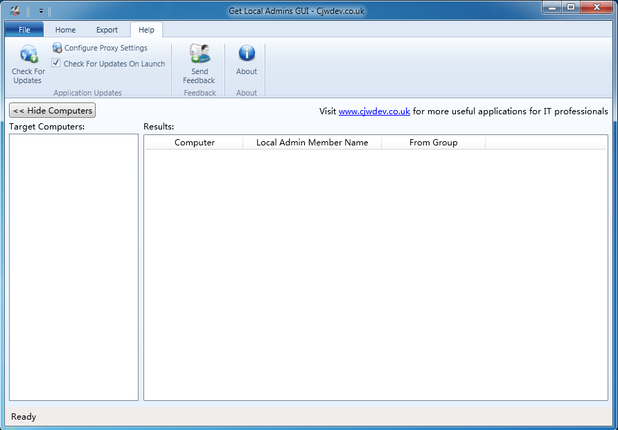獲取本地管理員GUI(Get Local Admins GUI)是一款能夠在服務(wù)器或者工作站上查看誰有管理員權(quán)限的工具。只要輸入你想掃描的電腦的名稱,程序就會告訴你誰是本地管理員。
