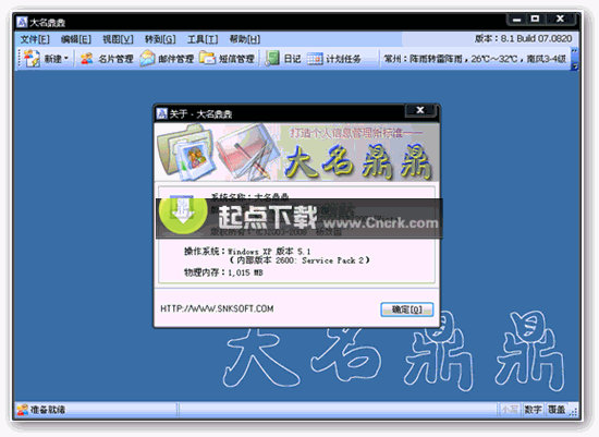大名鼎鼎V8版 使用了SnkNET的第六代名片管理引擎,整合了“名片”、“記事”、“信息”、“郵件”、“日記”、“短信”、“日程”管理等眾多功能于一體