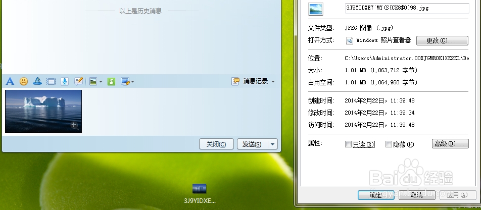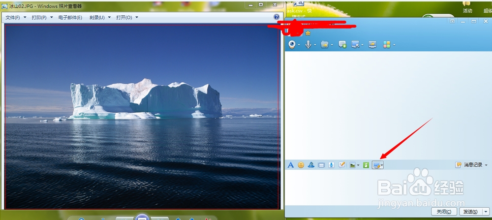 3、通過(guò)截圖,圖片就到了聊天窗口,這時(shí)候我們只需【左鍵點(diǎn)住】圖片,拉倒桌面即可。