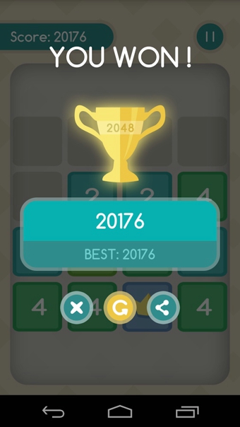總結(jié):通過以上四個2048攻略技巧基本上可以通關(guān)了,通關(guān)界面如下。