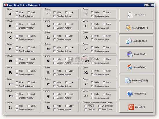 Easy Disk Drive Safeguard V3.4 英文綠色特別版 關(guān)閉自動運行的功能并且隱藏和鎖定你的本地和網(wǎng)絡(luò)驅(qū)動器
