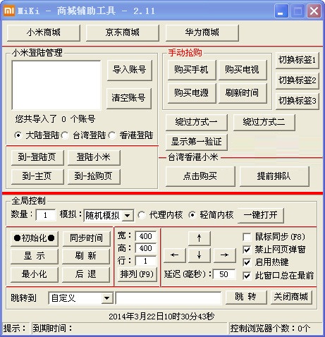 您的位置:起點(diǎn)軟件下載電腦軟件系統(tǒng)軟件MIKI商城輔助工具 (紅米note手機(jī)搶購) v2.11 綠色版