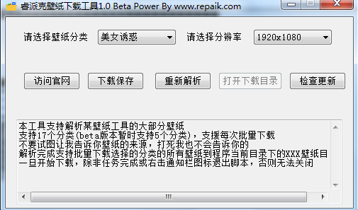 睿派克壁紙下載工具支持從某知名壁紙服務(wù)器直接解析壁紙地址