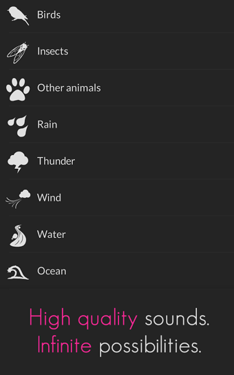 TaoMix(輕松音樂(lè)混音器)是一款很好的音樂(lè)軟件。TaoMix安卓版有多種大自然場(chǎng)景中的聲音,非常的清脆悅耳,并且還能設(shè)置場(chǎng)景,各種立體聲。當(dāng)你工作累了,厭煩城市的喧囂時(shí),找個(gè)安靜的地方,閉上眼睛,靜靜的聆聽(tīng),仿佛置身于大自然之中,讓你的心情寧?kù)o下來(lái)。大家可以試試!