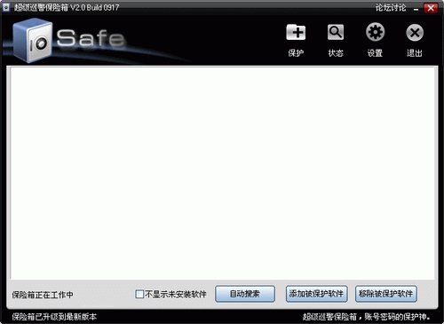 超級(jí)巡警保險(xiǎn)箱 V2.0 0917 綠色免費(fèi)版 超級(jí)巡警的保險(xiǎn)箱的功能,是我們特別為賬號(hào)保護(hù)設(shè)計(jì)的功能,全面保護(hù)你的賬號(hào)安全。