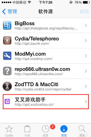 第一種方式:添加叉叉助手的cydia源,apt.xxzhushou.cn, 源添加方法在幫助中心有介紹。