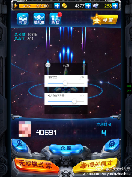 叉叉雷霆戰(zhàn)機(jī)輔助是一款用于游戲《雷霆戰(zhàn)機(jī)》的一款輔助工具。雷霆戰(zhàn)機(jī)是騰訊代理的一款星際空戰(zhàn)手游精品,公測(cè)一經(jīng)開啟就受到很多玩家的熱烈追捧,發(fā)布5小時(shí)即榮登蘋果AppStore雙榜第一。叉叉雷霆戰(zhàn)機(jī)助手擁有減少傷害,秒殺BOSS等功能??梢詭椭婕亿A取大量金幣、鉆石、高能爆彈等獎(jiǎng)勵(lì),趕快下載體驗(yàn)吧。