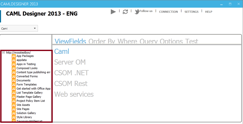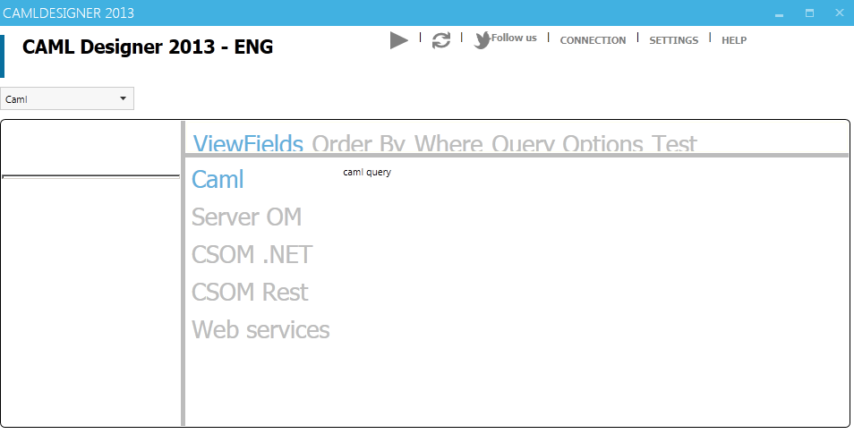 下載CAMLDesigner后解壓到本地, 啟動(dòng) CamlDesigner2013.exe(需要.Net 4.5 支持):點(diǎn)擊connection 配置連接