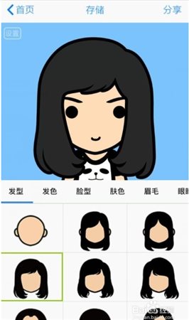 2、接下就是你設(shè)置你喜歡的萌圖樣子吧!可以選擇發(fā)型,發(fā)色,臉型,膚色,眉毛,眼睛等等這一些的設(shè)置,本人對(duì)萌了解不是很深所以就一一演示了。