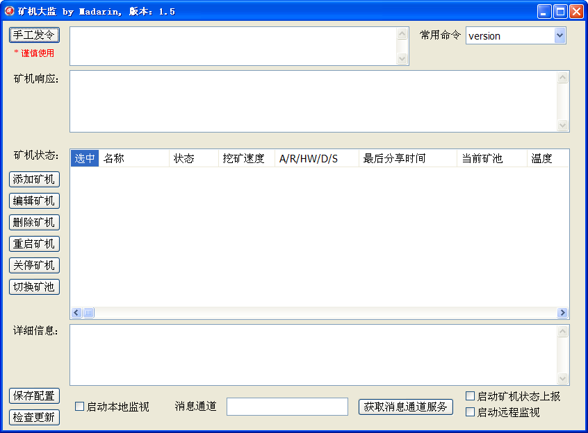 您的位置:起點(diǎn)軟件下載電腦軟件系統(tǒng)軟件礦機(jī)大監(jiān)下載 1.5 綠色版