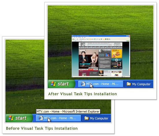Vista有一個(gè)功能,是可以讓我們將鼠標(biāo)游標(biāo)移到工具欄的項(xiàng)目上,就會(huì)顯示出該視窗的內(nèi)容.現(xiàn)在,只要安裝了 Visual Task Tips 讓我們的 Windows XP 也能有同樣的效果了,Visual Task Tips 是非常潔簡(jiǎn),且易于使用的,需要任何設(shè)置調(diào)整,只要安裝到我們 Windows XP 操作系統(tǒng)上,就可以達(dá)到跟 Vista 同樣的任務(wù)欄效果,而且,它還是個(gè)免費(fèi)的軟件.