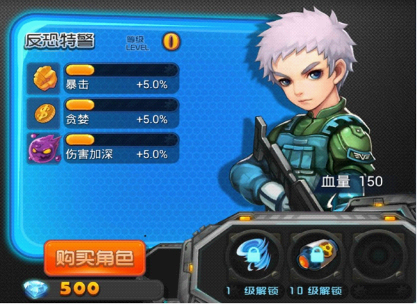 騰訊全名防線玩法很簡(jiǎn)單,玩家操控的角色會(huì)出現(xiàn)在戰(zhàn)場(chǎng)的下方,僵尸們會(huì)從戰(zhàn)場(chǎng)的各個(gè)方向朝玩家襲來(lái),點(diǎn)觸屏幕可以控制角色朝指定方向開(kāi)槍?zhuān)c(diǎn)擊角色旁的兩個(gè)藍(lán)色都可以切換武器,左下角還有角色必殺技可以使用。把握好地形,僵尸行進(jìn)路線,武器切換以及合理的使用必殺技會(huì)是你抵抗僵尸進(jìn)犯的不二利器。【人物角色】