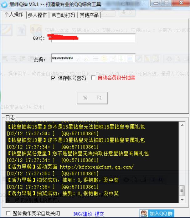 3、隨著活動(dòng)的不停增加,不建議使用單人模式。單個(gè)QQ也可以加入到 多人模式 中領(lǐng)取,方便設(shè)置自己需要領(lǐng)取的選項(xiàng)。