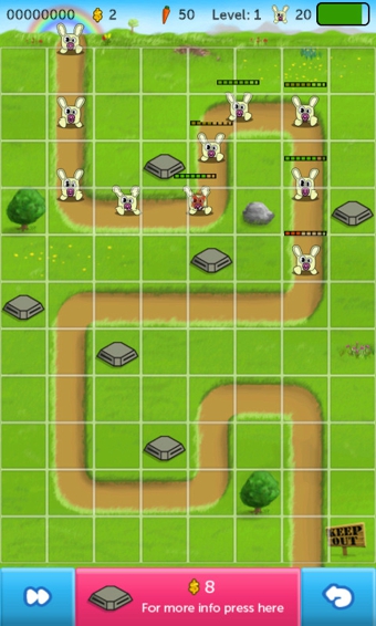 新保衛(wèi)蘿卜是一款包裝出色的塔防游戲。使命就是捍衛(wèi)好蘿卜,別讓它被外星人吃失蹤。每個(gè)蘿卜都設(shè)有10血的生命值,也就是有10次被怪物“啃咬”的機(jī)緣,生命值為0時(shí),使命失蹤敗。每個(gè)主題都設(shè)置有三年夜種類怪物:小草頭神,其血量和速度都斗勁一般。翱翔怪,速度較快,血量很稀薄。最后一輪抨擊襲擊的巨怪,血量很厚,可是抨擊襲擊速度很遲緩。操作很簡(jiǎn)單,只需點(diǎn)擊地圖中閑置區(qū)域就可以安設(shè)炮塔,而在游戲過程中,每個(gè)炮塔都有可繼續(xù)進(jìn)級(jí)兩次以達(dá)到頂級(jí),進(jìn)級(jí)后不只外形轉(zhuǎn)變,其輸出也變得加倍強(qiáng)年夜。不要磕暌刮戲里的各類設(shè)置都是可愛范,可是它們都具備著不凡的威力,有傾向輸出型(魔法球和汽油瓶)或干與干與型(減速的便便和冰凍星星),有長(zhǎng)距離的抨擊襲擊,年夜面積群體抨擊襲擊(太陽),以及能以一片飛葉掃全屏的風(fēng)扇。