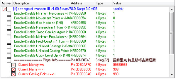 注3:本修改表所有選項均只對玩家生效,無須擔(dān)心電腦勢力也被影響