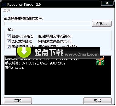 一個相當(dāng)不錯的資源重建工具,2.6版新增了3個高級功能,可以重建PE文件,導(dǎo)出和導(dǎo)入資源二進(jìn)制數(shù)據(jù)