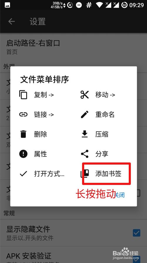 然后會(huì)出來我們長按文件彈出來的菜單,那么怎么排序呢?我們找到要排序的選項(xiàng),長按拖動(dòng)它。