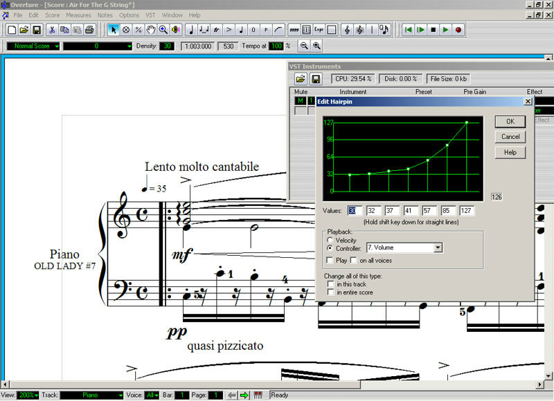 回放在 Overture 4中,演奏記號(hào)、標(biāo)記記號(hào)、裝飾音、漸強(qiáng)(弱)等記號(hào)可以直接回放出效果,并且可以通過參數(shù)設(shè)置修改每種音效的不同效果。這對(duì)于追求音效完美的高手們來說無疑是個(gè)福音。