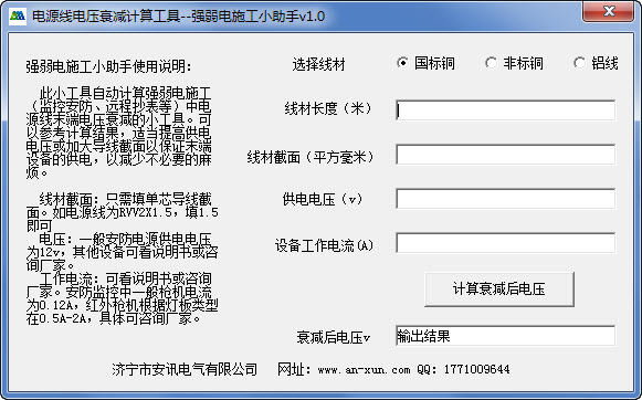 線(xiàn)材截面:只需填單芯導(dǎo)線(xiàn)截面。如電源線(xiàn)為RVV2X1.5,填1.5即可電壓:一般安防電源供電電壓為12v,其他設(shè)備可看說(shuō)明書(shū)或咨詢(xún)廠家。