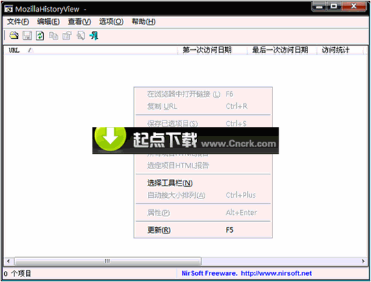 MozillaHistoryView V1.35 漢化綠色特別版 MozillaHistoryView 是一個小巧的工具,可以讀取 Firefox/Mozilla/Netscape 瀏覽器的歷史數(shù)據(jù)文件(history.dat),并按照最后日期列表顯示所有訪問頁面,訪問的每個頁面包含以下信息:URL,第一次訪問日期,最后一次訪問日期,訪問統(tǒng)計,參考,標(biāo)題,主機(jī)名稱。你可以很容易的輸出歷史數(shù)據(jù)為文本/HTML/XML文件