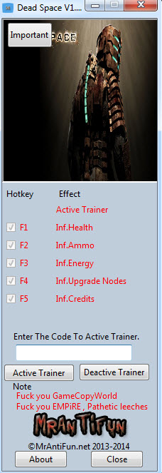 死亡空間修改器+5 v1.0.0.222 綠色版 按F1 無限生命