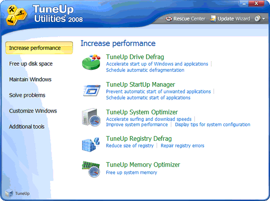 TuneUp Utilities 2009 8.0.1100 Final 英文特別版 來自德國的系統(tǒng)調(diào)整工具,它能夠讓你的系統(tǒng)跑的更順暢。TuneUp Utilities的功能應(yīng)有盡有,主要工具包括:系統(tǒng)改造/分析、硬盤/登錄文件清理、系統(tǒng)加速、記憶體最佳化、登錄文件編輯、軟件卸載、工作管理員、文件還原/清理