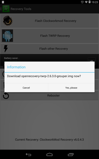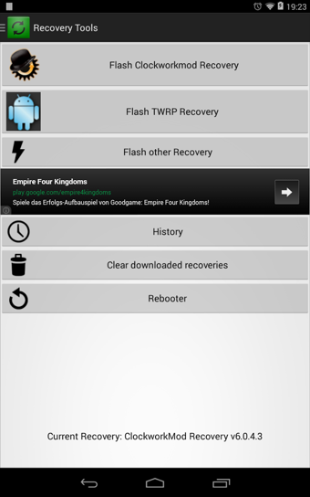 Recovery Tools是一款recovery工具,語(yǔ)言為全部英文,但使用還是非常方便的。提root權(quán)利后,Recovery Tools安卓版可支持FlashClockworkmod和Flash TWRP,使用前最好將重要數(shù)據(jù)備份到個(gè)人電腦保存。