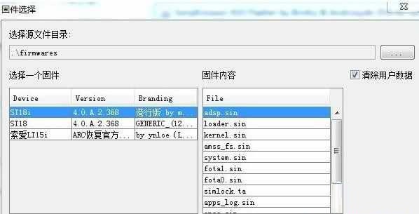 5、在菜單的左側(cè)選擇你想要強(qiáng)刷的強(qiáng)刷包,這邊我就隨便選擇一個了。選擇完畢后右側(cè)會出現(xiàn)這個強(qiáng)刷包中所有包含的刷機(jī)文件。然后點(diǎn)擊OK。請等待。出現(xiàn)的界面如下圖。