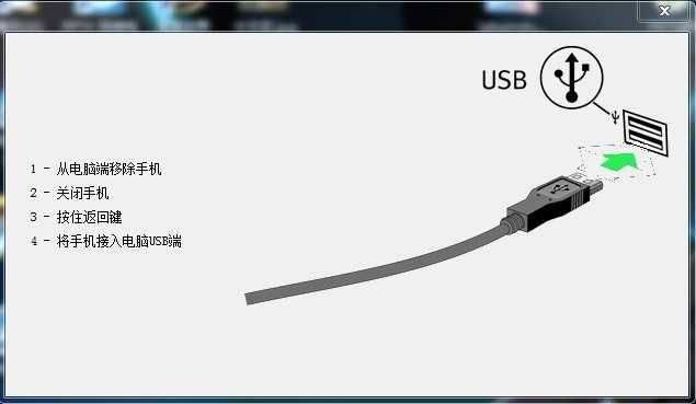 7、此時拿出手機(jī),千萬不要開機(jī)。按住“音量-”按鍵不放,再用數(shù)據(jù)線連接手機(jī)和計(jì)算機(jī)。此時手機(jī)指示燈是常亮綠色。如果是第一次使用計(jì)算機(jī)上會有提示安裝驅(qū)動。請按照帖子一開始的提示安裝正確的驅(qū)動。驅(qū)動安裝錯誤會找不到設(shè)備。請務(wù)必仔細(xì)安裝。