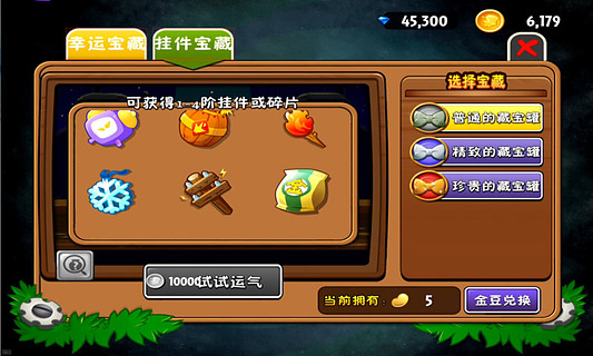 通關(guān)后點擊三個小馬,可以獲得【金幣、金手指免費使用機會、鉆石、裝扮等】,連續(xù)通關(guān)5天彩陶游戲會直接送一個裝扮。(植物裝扮只有裝飾作用,選卡畫面可以取消裝扮)
