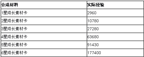 1、 成長(zhǎng)素材卡 比 角色卡 的合成經(jīng)驗(yàn)多很多。三星成長(zhǎng)卡的所得經(jīng)驗(yàn)值約為二星成長(zhǎng)卡的3倍, 而二星成長(zhǎng)卡的所得經(jīng)驗(yàn)值又約為一星成長(zhǎng)卡的3倍。