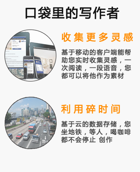 手機(jī)更多靈感,基于移動(dòng)的客戶端能夠幫助您實(shí)時(shí)收集靈感,一次閱讀,一段語言,您都可以將他作為素材