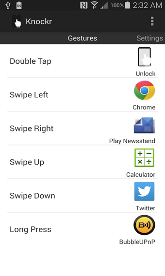 Knockr可以在你鎖屏的情況下,通過(guò)點(diǎn)擊或者手勢(shì)激活屏幕或者直接開(kāi)啟其他應(yīng)用程序。