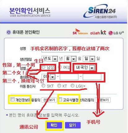 I-pin類似于網(wǎng)上的通行證,韓國(guó)因?yàn)樾枰獙?shí)名,所以都需要登陸證號(hào)姓名才可以??梢杂玫顷懽C申請(qǐng)I-pin,以后用I-pin再注冊(cè)其他所有網(wǎng)站都可以。因?yàn)橥鈬?guó)人登陸證不是所有網(wǎng)站都能識(shí)別,但I(xiàn)-pin是都能識(shí)別的。所以外國(guó)人先申請(qǐng)個(gè)I-pin是比較方便的)I-pin認(rèn)證是(紅色的)因?yàn)槲覜]申請(qǐng),直接本人認(rèn)證了?。S色的)