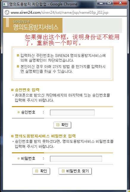 身份證自己百度搜索“韓國(guó)身份證” ,如果出現(xiàn)彈窗,說明身份證無法注冊(cè)。