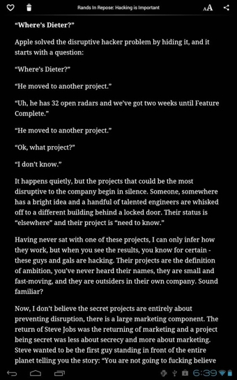 Instapaper安卓版是一款簡單方便的離線閱讀軟件。你可以把想閱讀的網(wǎng)頁保存,然后通過應(yīng)用實(shí)現(xiàn)離線閱讀。Instapaper在用戶中口碑非常不錯(cuò),有需要的可以下載試用下。