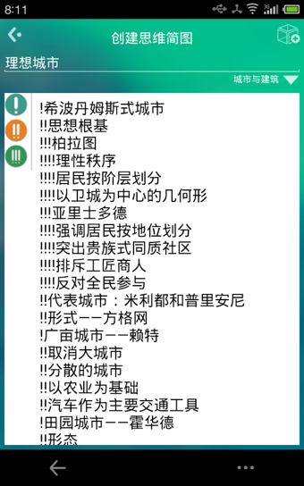 思維簡圖是一款非常實(shí)用也很簡單的軟件,使用思維簡圖安卓版時(shí),只需要根據(jù)軟件難度規(guī)則用感嘆號(hào)來分級(jí),然后輸入你的想法和思路就能很快的出現(xiàn)思維簡圖,讓你的思路更加清晰。