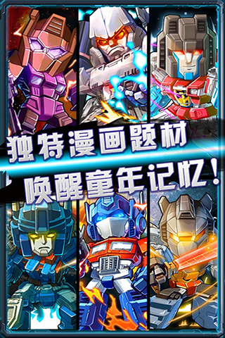 獨特變形卡牌 開創(chuàng)卡牌手游新紀元 ,極致招式特效 金屬碰撞!酣暢淋漓!簡單上手 休閑卡牌手游王道之選!萬人矚目,喚醒童年記憶!今日狂暴來襲!你從未見過的Q版擎天柱和威震天,諸多人物以前所未有的“塞伯坦形態(tài)”卷土重來!他們是你童年那份汽車人記憶中,最令你熱血澎湃的人物!回到汽車人的血腥戰(zhàn)場吧!體驗獨有3D特效引擎帶來的暢快打擊感!金屬碰撞!酣暢淋漓!