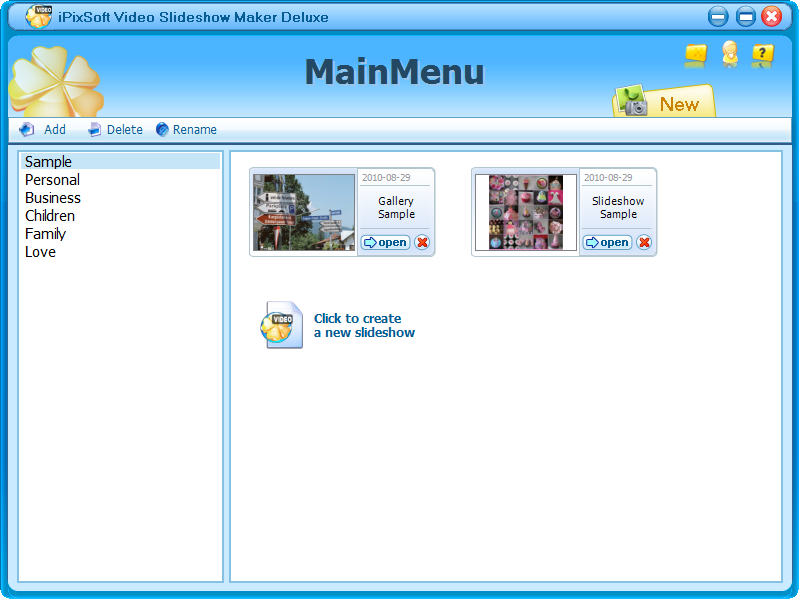 一、主菜單當(dāng)您啟動(dòng)iPixSoft Video Slideshow Maker時(shí),您將看到“主菜單”,可以在這里做些以下事例。